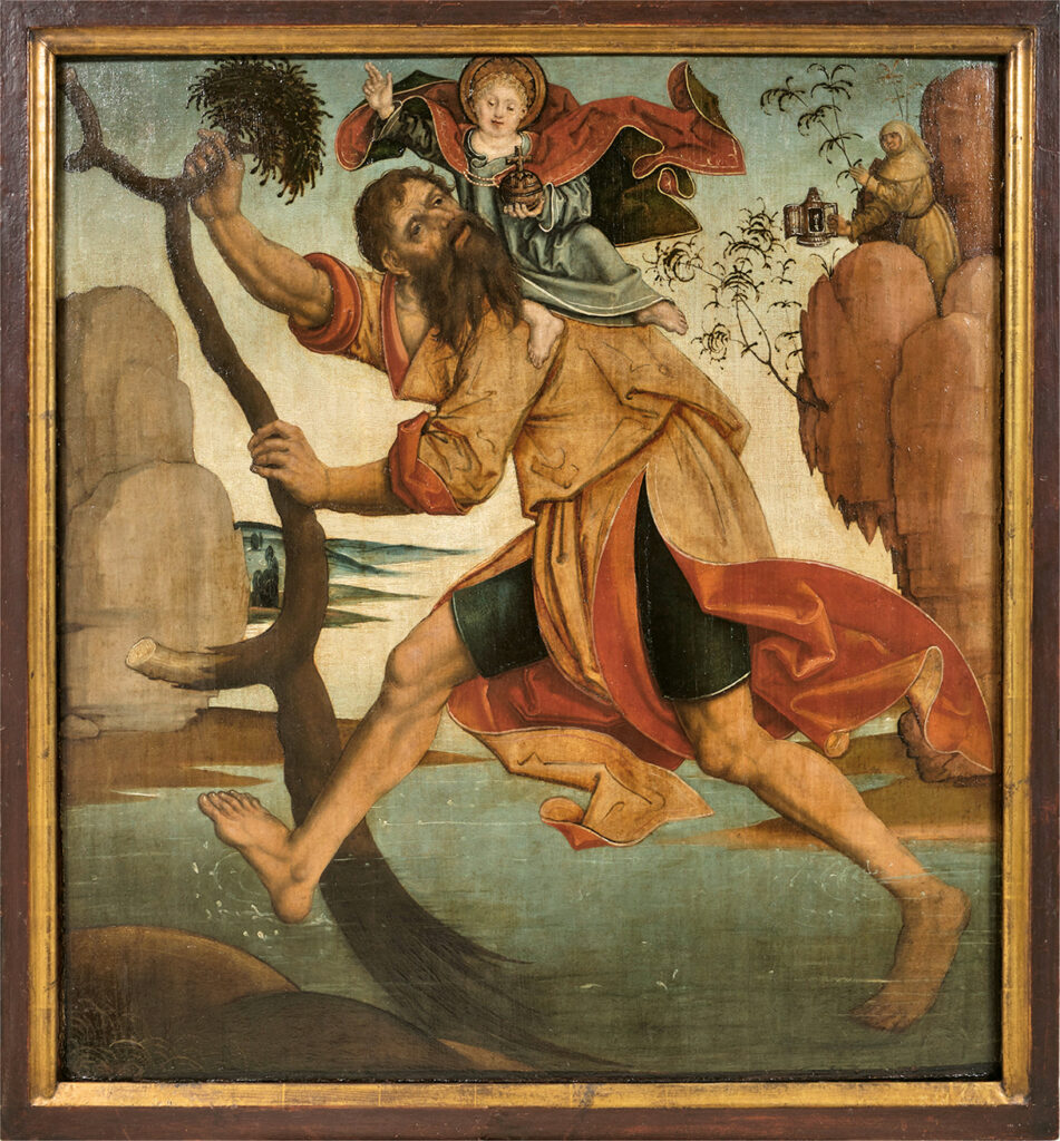 Bernhard Strigel, Werkstatt, Der heilige Christophorus, 1522. Mischtechnik auf Holz,